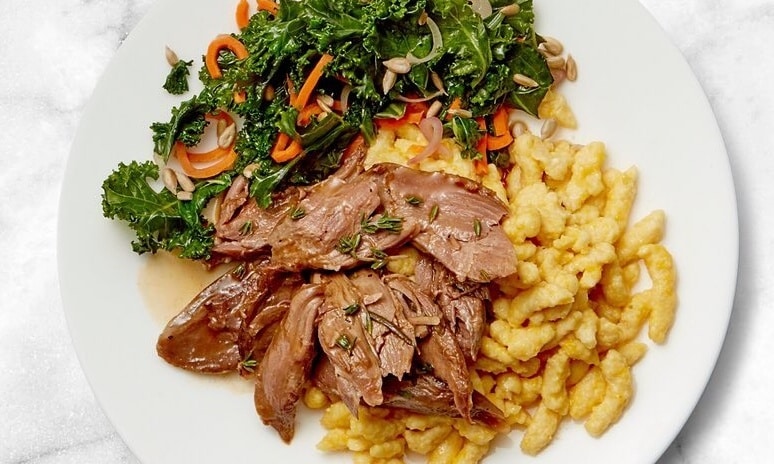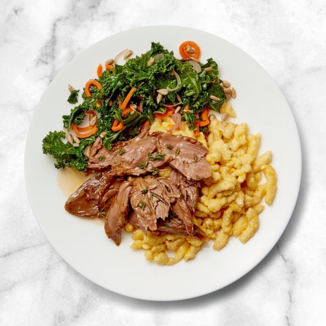 What if we told you that you could have a healthy, gourmet, chef-inspired dinner on the table in six minutes? What if we told you that many of the core ingredients are local/regional and non-GMO? And that your choice of entrees includes things like cumin lime-roasted salmon, served with coconut black rice and sesame carrots, topped with a herbed yogurt sauce? Or slow-roasted lamb shank with root vegetables, spaetzle and kale? Or turkey ricotta meatballs with whole grain pasta?