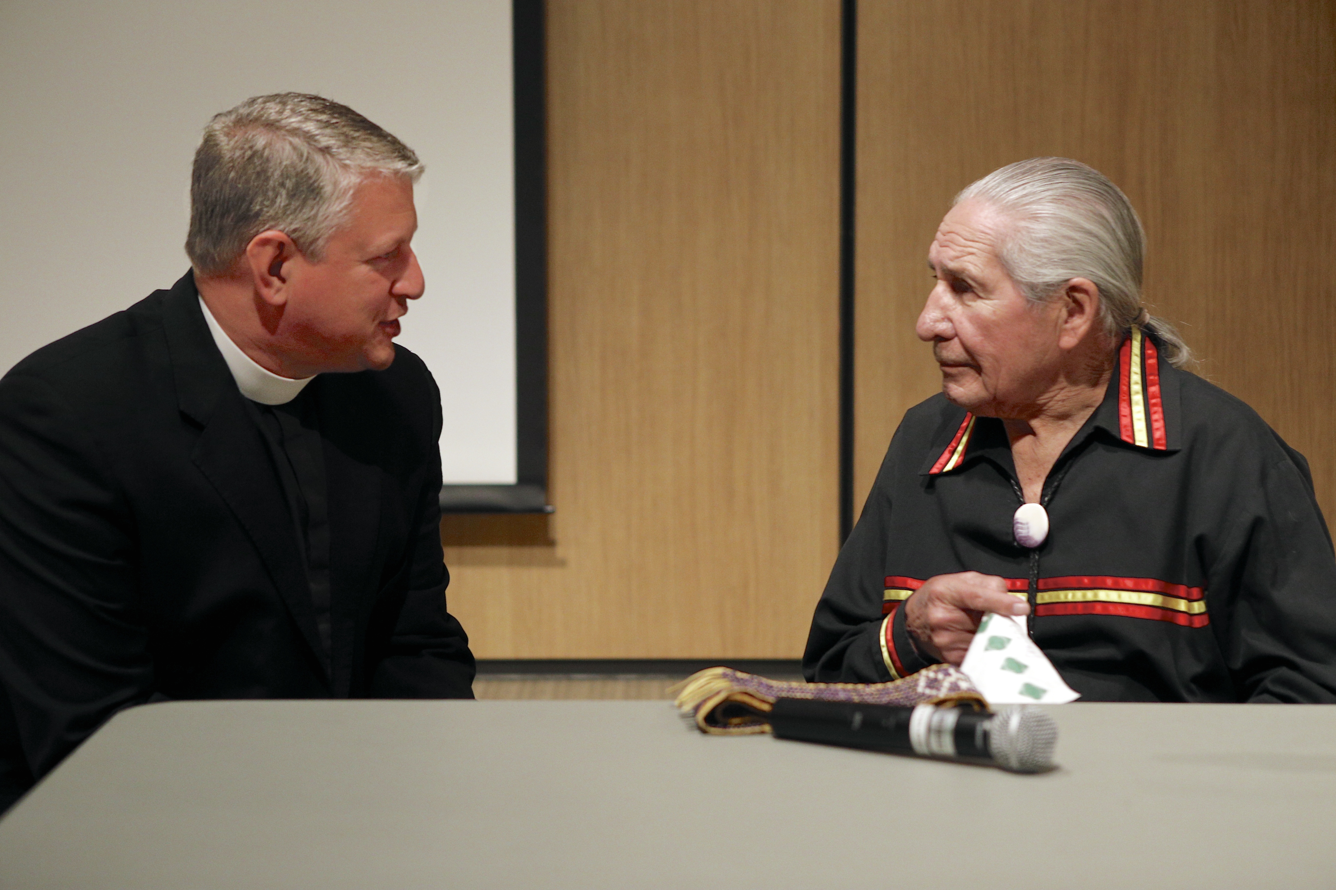 Audience members shared several ways the Jesuits could heal relations with Native Americans. They include helping to convince the Vatican to repudiate 15th-century Doctrine of Discovery, which justifies the takeover of land by Christians from non-Christians; the return of wampum belts thought to be at the Vatican; and reparations for mistreatment of Native Americans in boarding schools.