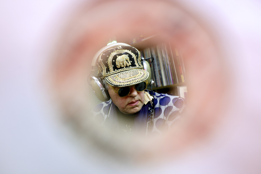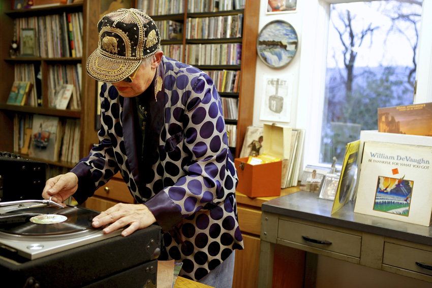 Sporting a purple polka-dotted smoking jacket, David Broda leaned and rocked to the beat of St. Germain’s “Rose Rouge,” playing on his classic 1200 Technics turntable. The sound system projected the jazz tune with booming clarity through his garage-converted-record-collection-shrine off his Jamesville home, a space he calls Funky Butt Hall.