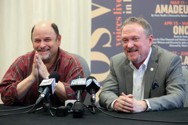 Jason Alexander (left) with the Syracuse Stage artistic director field questions from the local media. (Michael Davis/Syracuse New Times)