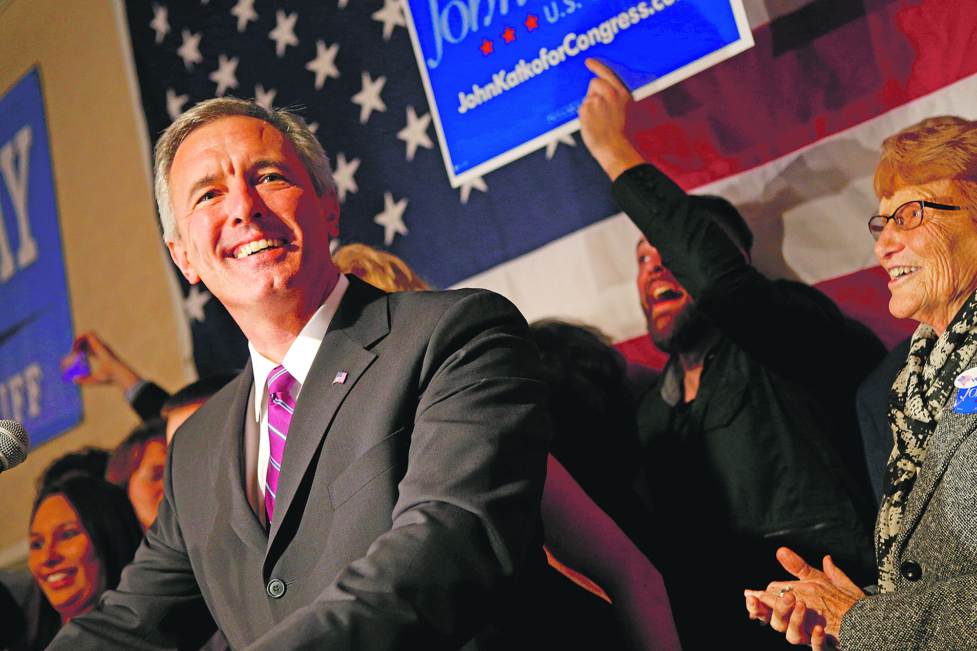 John Katko’s nephew, Michael “Tots” Heagerty, leads the cheers on election night. The congressman is in the foreground.