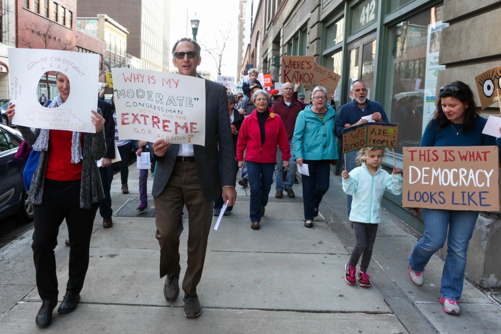 Some of Katko’s Republican colleagues, including Trump, have dismissed critical constituents as “paid protesters” and called the protests “theatrics.” White House Press Secretary Sean Spicer last week described the protests as a “very paid, AstroTurf-type movement.” Tea Party demonstrations against the Affordable Care Act in 2009, he said, were “very organic.”