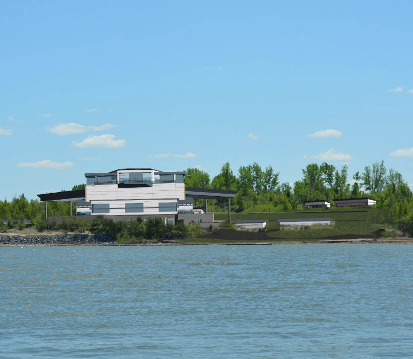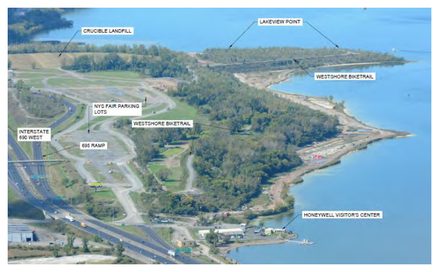 The proposed outdoor event complex on the western shore of Onondaga Lake, referred to in the conceptual design report as Lakeview Amphitheater – a roughly 17,500 capacity performance venue (including both covered and lawn seats) that also plans a nature area, vendor area, recreational trails and a “small outdoor community theater” in the style of Thornden Park’s Amphitheater.