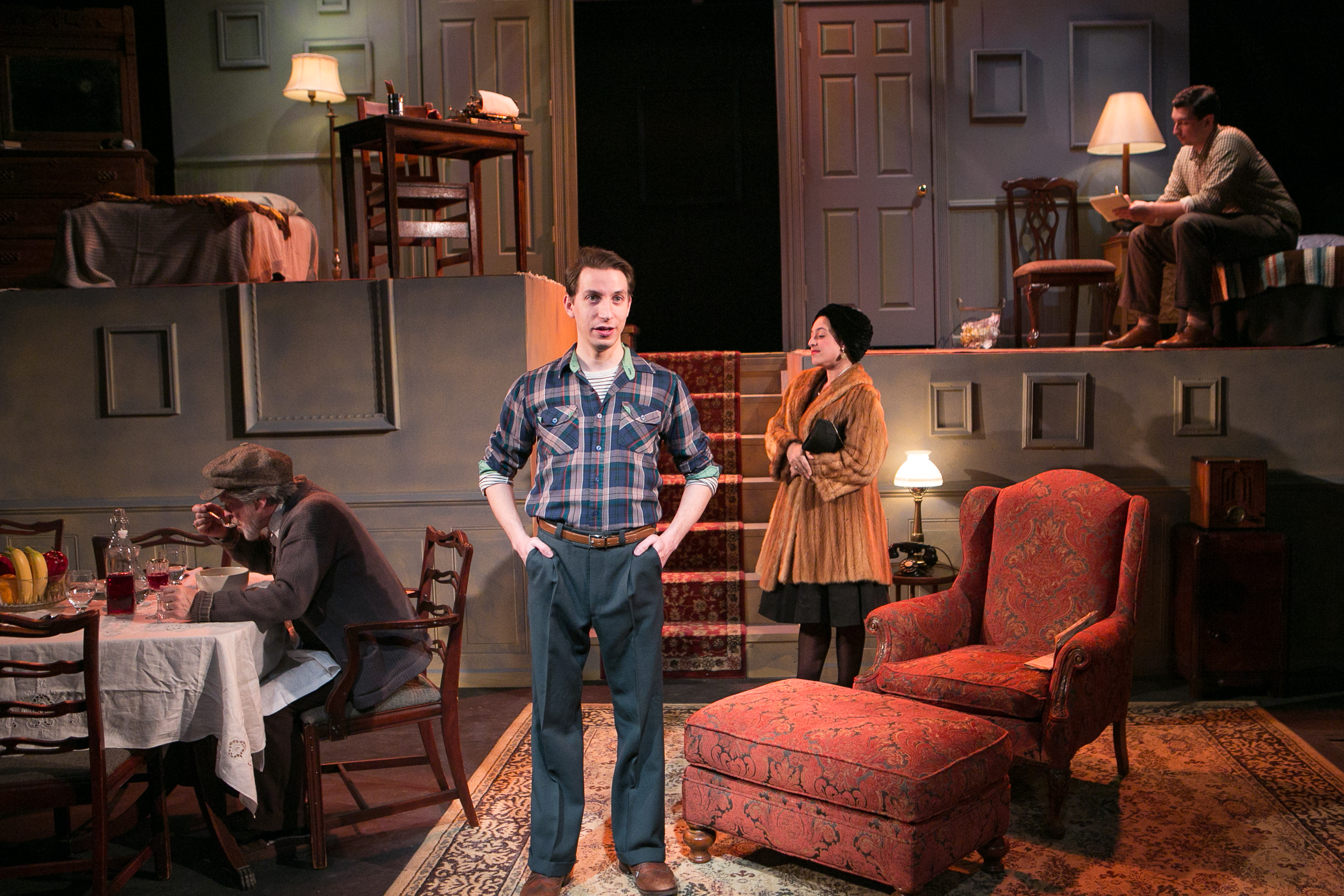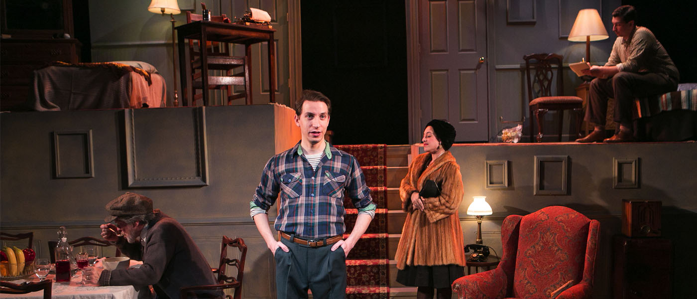 Tim Brown’s set for the Redhouse Arts Center’s mounting of Broadway Bound offers a cramped, lower-middle-class apartment in the southern reaches of Brooklyn. The kitchen and living room are before us and the bedrooms of the two sons are seen simultaneously above. People shout back and forth and slam doors more loudly, but that does not mean it’s in any sense a farce.