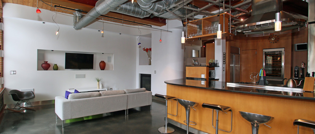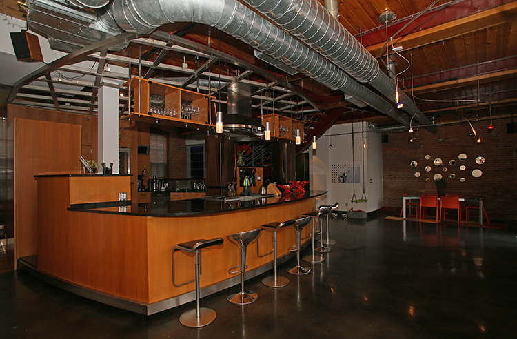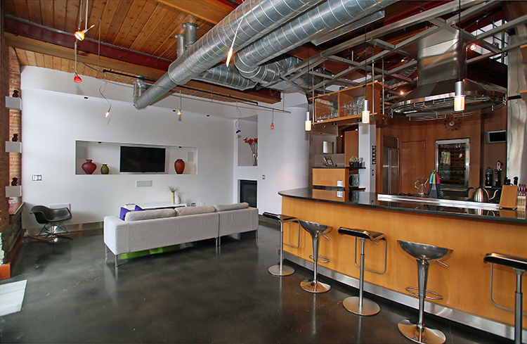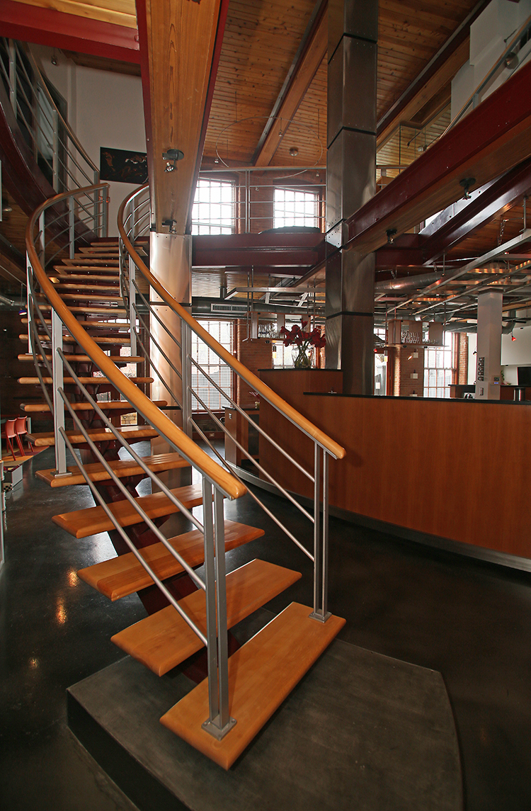 He started with a one-bedroom, one-bath unit in the former five-story brick factory. Last year, he bought a 3,600-square-foot, two-floor condo with a floating staircase of metal and wood and columns wrapped in stainless steel.