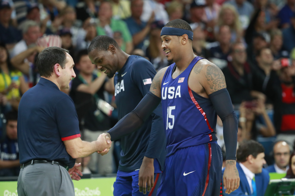 Though team captain Carmelo Anthony scored only 21 combined points in Team USA’s last three games — seven points in each game — he ended his Olympic career as the most decorated player the U.S. Olympic Men’s Basketball Team has ever seen, with three gold medals and one bronze to his name. Earlier in the games, Anthony became the all-time leading scorer in Team USA history, and with Sunday’s victory, he also passed David Robinson to become the all-time leader in rebounds with 125.