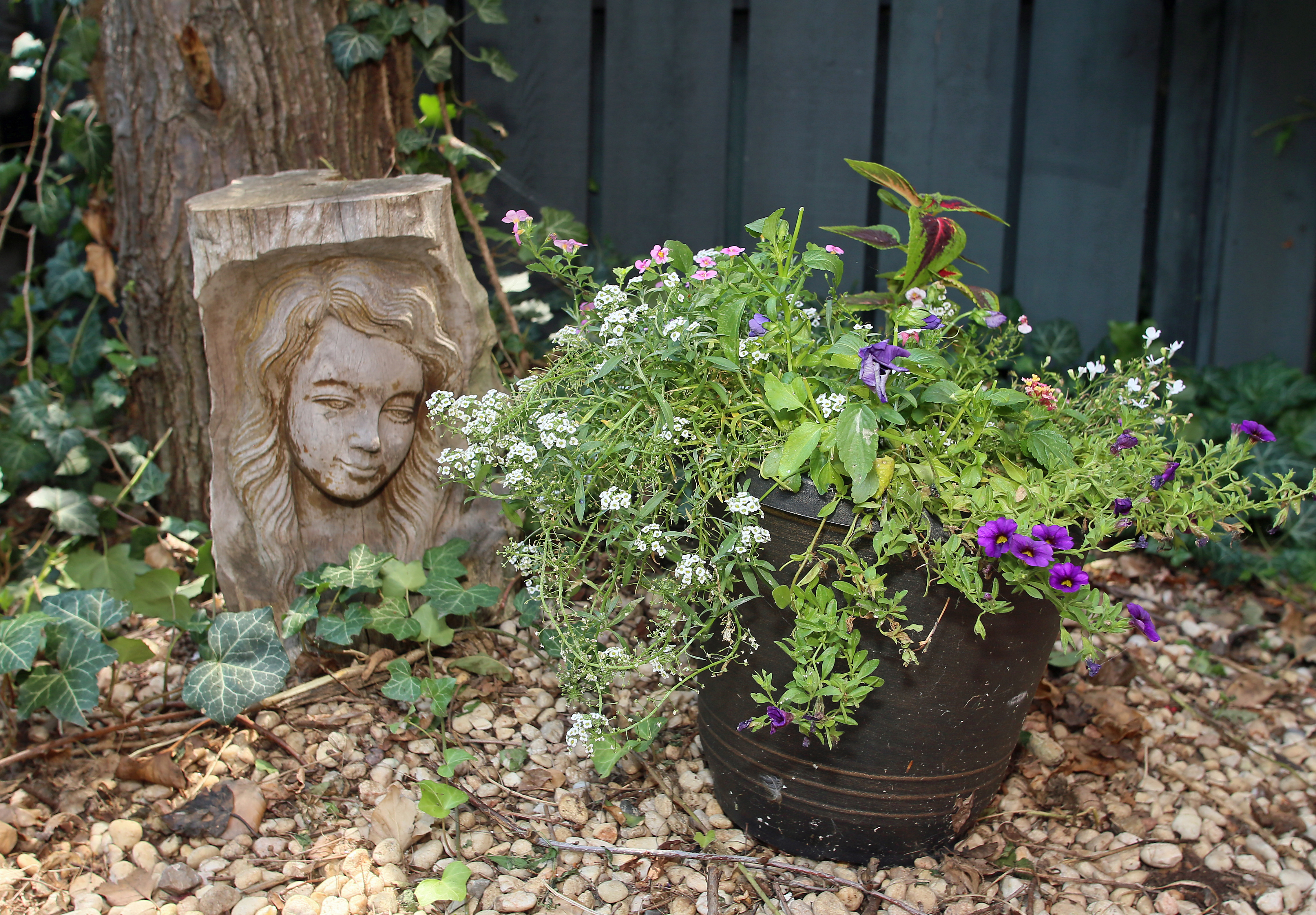 On a recent morning, Scarlett was happily snapping a few dead twigs from the holly bush in the front courtyard. Trimming and pruning bushes and trees were a new experience for Johansen during their first year in the condo, she said. This year, she’s growing flowers in pots.