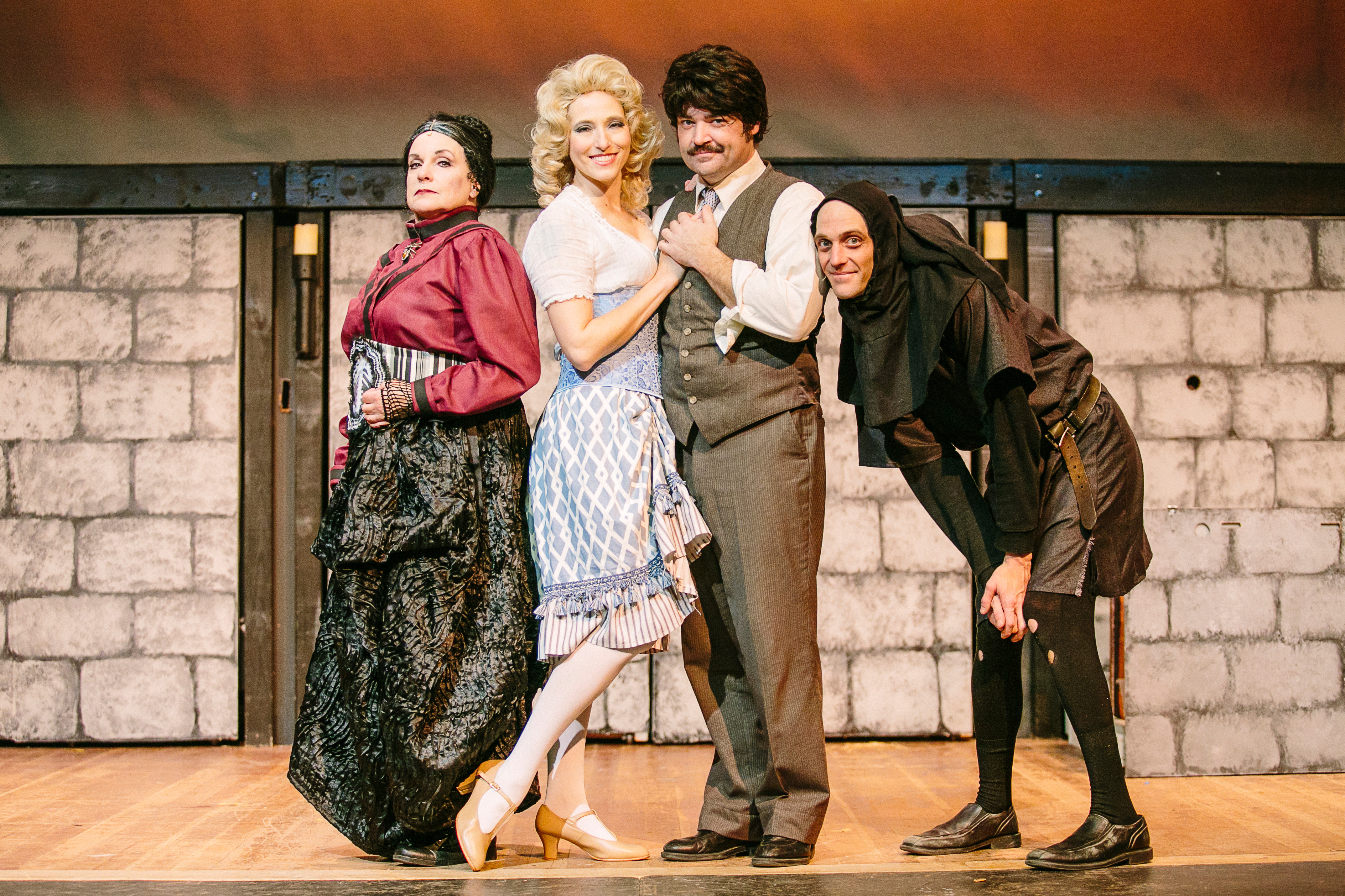 Kathy Egloff, Leila Dean, Henry Wilson and Josh Taylor in Baldwinsville Theatre Guild’s Young Frankenstein. Amelia Beamish photo
