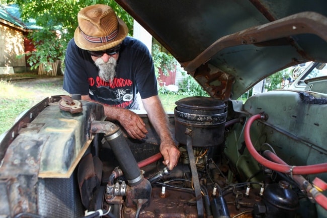 Ol Skool Roundup organizer Sparky fires up his rat rod. Michael Davis photos