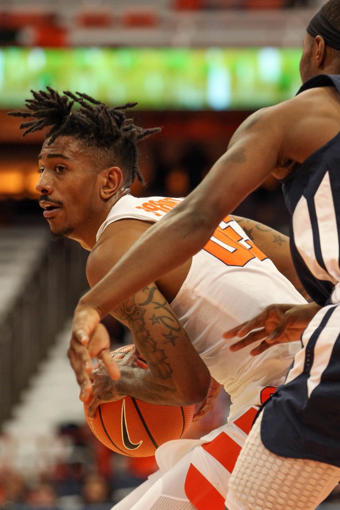 “Those two guys are pretty good shot blockers. They’re not average shot blockers,” Boeheim said. “That’s a big factor. The threat of a blocked shot is a factor down there.”
