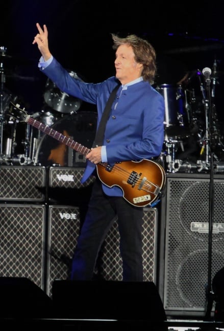 With McCartney’s 55 years of hit songs with The Beatles, Wings and as a solo artist, it was a slam dunk that he would entertain the crowd. But McCartney dropped jaws at the muggy Dome with his energy, stamina and his wondrous talent as he deftly maneuvered from one instrument to the next, playing a dead-on electric guitar solo on “Foxy Lady” (following “Let Me Roll It”) to a rollicking piano on “Lady Madonna” to his legendary Hofner bass on a swinging “Back In The USSR.”