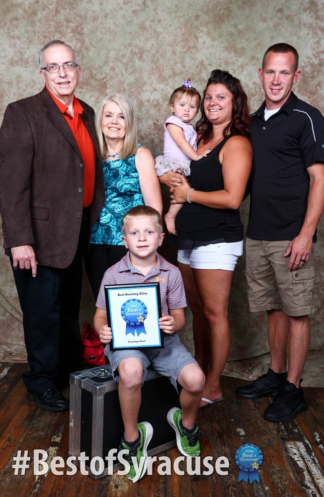 Best Bowling Alley: Flamingo Bowl – Clockwise from left, Jack and Mary Jo Hamlin, Teagan, Trish, Taylor and Tyler Cinter.