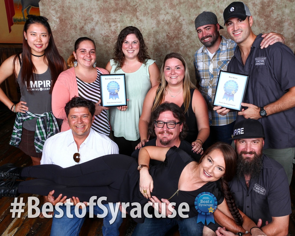 Best Brew, Best Sunday Brunch: Empire Brewing Company – Front row, Dave Katleski, Tim Butler, Breanne Barzee, Nat Teneyck. Back row, Jing Zhang, Jessica Valentin, Ashley Liner, Emily Whalen, John Phillips, Tim Dellas.