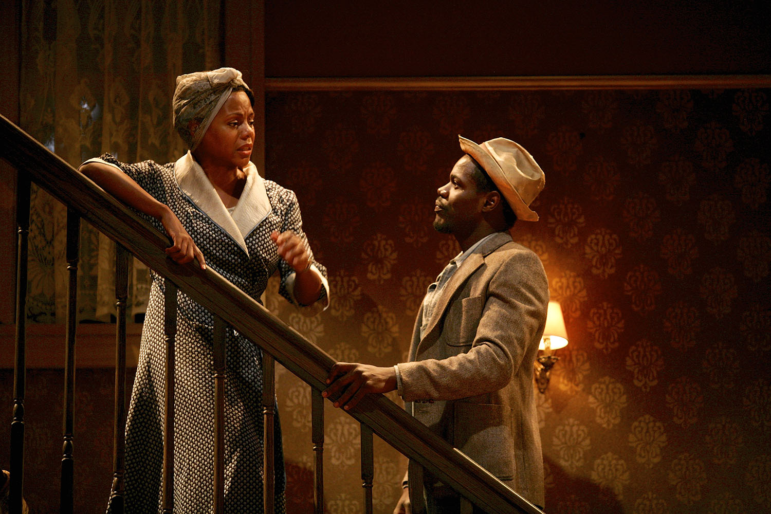All Wilson plays are as much about their decade as they are about their characters. In the 1930s an abandoned farm in Mississippi would be literally dirt cheap. Slave times are at the edge of living memory, only 70 years previous. In a decade before the great post-World War II northward migration, blacks fresh up from the South seemed to come from a different country and speak a different language. Characters living in Pittsburgh, even at the lower reaches of society, already sound Northern. This includes Berniece; her wise uncle Doaker Charles (Derrick Lee Weeden); the gambler Wining Boy (G. Valmont Thomas), Doaker’s comic older brother; and Avery (Ken Robinson), a preacher and Berniece’s would-be suitor.