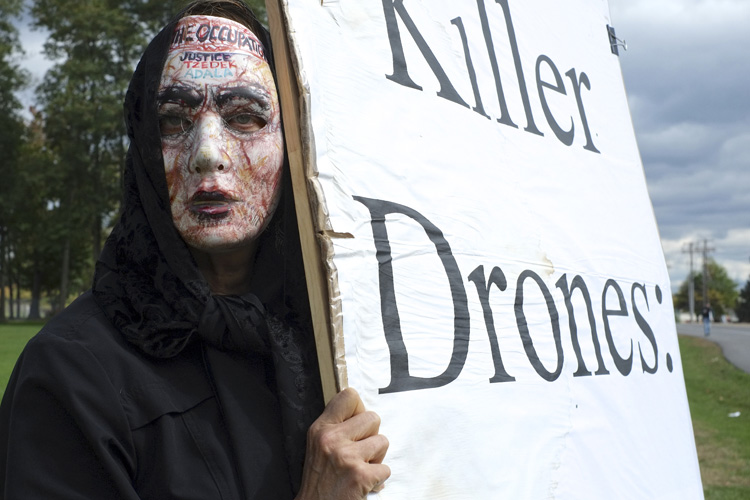 Protests at Hancock aren’t anything new for Upstate Drone Action, a group of activists working to call attention to the issue and to “ground the drones.” They’ve been protesting at Hancock since 2009.