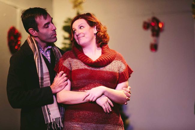 Director Bella Calabria starts out with strong leads, including Syracuse New Times Syracuse Area Live Theater (SALT) winner Tom Minion as Kris Kringle with his own fluffy beard, and red-haired Korrie Taylor in the Maureen O’Hara part of single mom Doris. A drunken Macy’s Santa (Phil Brady) is disgracing his costume, and Minion’s Kringle restores dignity, without excessive bonhomie or any imitation of Edmund Gwenn from the movie. He listens to children and does not condescend to them.