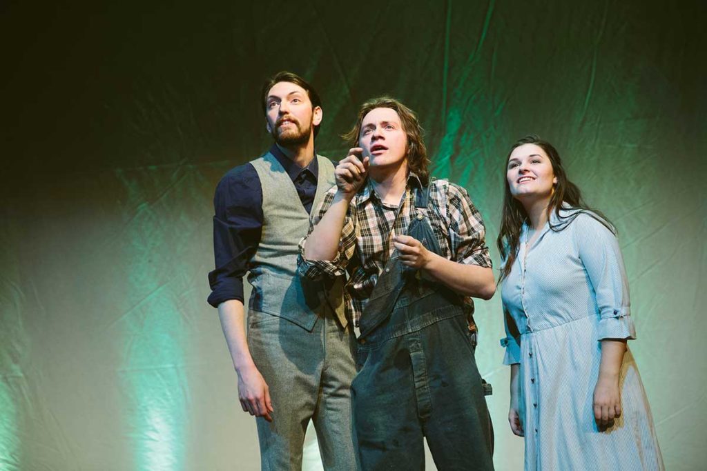 It’s the depths of the Depression. The much-reviled Herbert Hoover is still in office, and Prohibition, also unpopular, is the law of the land. The dialogue begins with two townies, farmer Basil Bennett (William Edward White at his most ominous) and field hand Dewey (Cole Salo), anticipating the conclusion of the play. That doesn’t make The Diviners a memory play, but a recounting of events is sure to lead to an unhappy end.