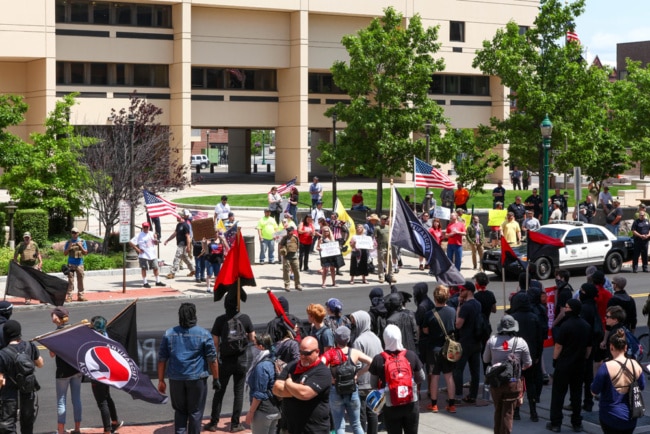 In a scene taking place in more than two dozen U.S. cities, ACT (American Congress for Truth) for America organized the Syracuse rally, claiming Sharia, or Islamic law, is incompatible with Western democracy. In response, far-left Antifa groups planned counterprotests. Many Antifa demonstrators were not from the Syracuse area.