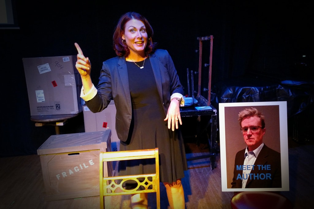 Tenor Paul Thompson, a welcome newcomer, is also highly physical. Active with the Baldwinsville Theatre Guild, he stopped the show with “Let the People Sing” in the January 2014 landmark production of Les Misérables. When he’s first discovering love here in the first act, he scampers over packing crates and furniture like a collie dog, never missing a note. Like Panek, he’s light-footed and adroit with Brown’s comic wordplay, most notably in the Yiddish-themed mock holiday ditty, “The Schmuel Song,” sung in front of a Christmas tree.
