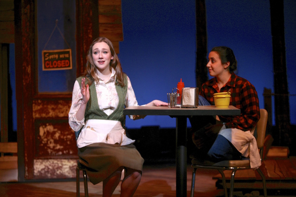 Although hardly a youth-oriented vehicle, The Spitfire Grill turns out to be better-suited for a college company than one might expect. Jenna Najjar scores high as Hannah, in the usually thankless task of playing a character three times her age. Ethereal Kelsey Roberts’ Shelby almost feels like the lead. And in the unsympathetic role of Caleb, wonderful Jerrod Everett’s “Digging Stone” takes us back to reality.