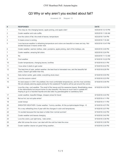 Last week we asked about people’s favorite season and heading into autumn. Here are the results, scroll to see all three: