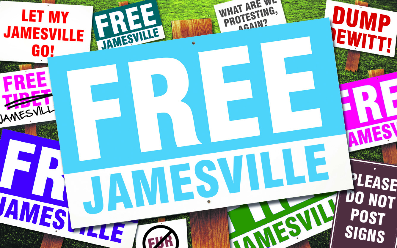 The Free Jamesville movement also welcomes Marv Bodley, president of the Jamesville Community Museum. “We don’t have any representation in Jamesville,” Bodley said with a radical glint in his eye. Something tells me his days of puttering around the museum are numbered. As executive director of the Jamesville/I-481 Toll Road Project, Bodley, if my plan goes forward, will rake in $185,000 a year plus a housing allowance.