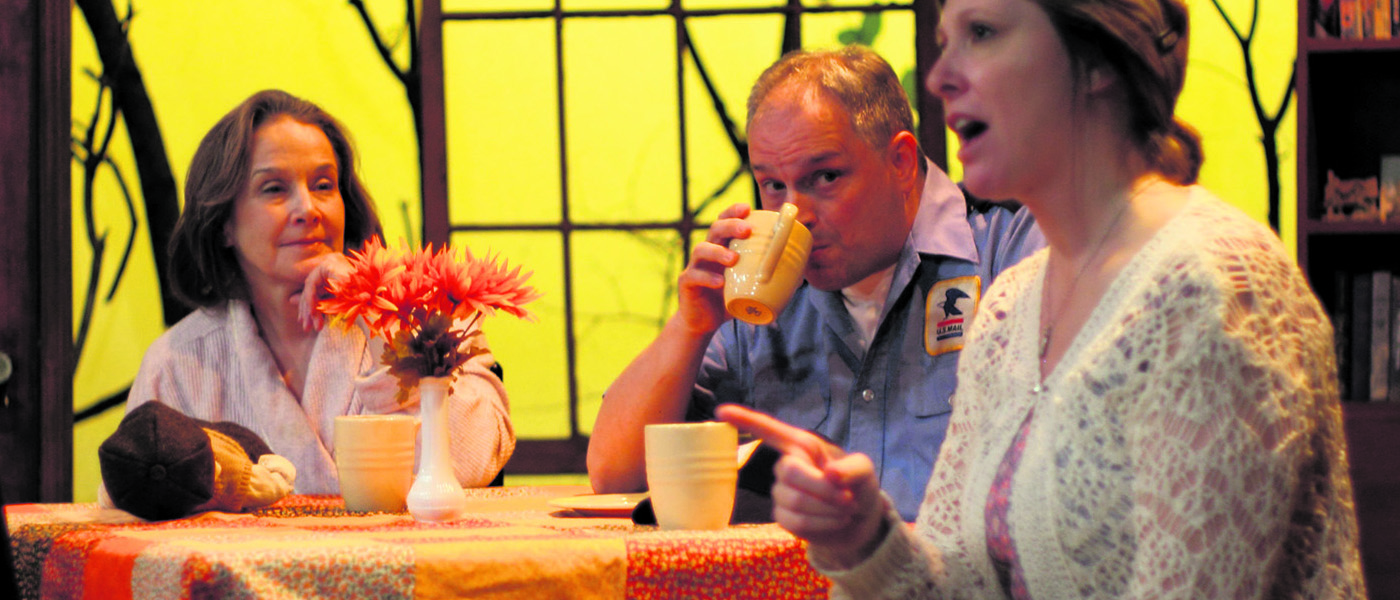 As with his revival of Mary Chase’s Harvey last year, director C.J. Young revisits a once-popular work, dismissed as sentimental, and proves it to be acerbic and bracing. From Tom Minion he fashions a Norman who refuses to be ingratiating. Always deft at abrasion, Minion lets us see where Norman really is. As Ethel, Fitzgerald, often cast opposite Minion, puts resoluteness into support. Joleene DesRosiers Moody brings a stylish cool to Cheslea, with some of the manner of her former calling as a TV news reporter. Playing the mailman, Robb Sharpe‘s heavy Down East accent could be useful in a Pepperidge Farm commercial.
