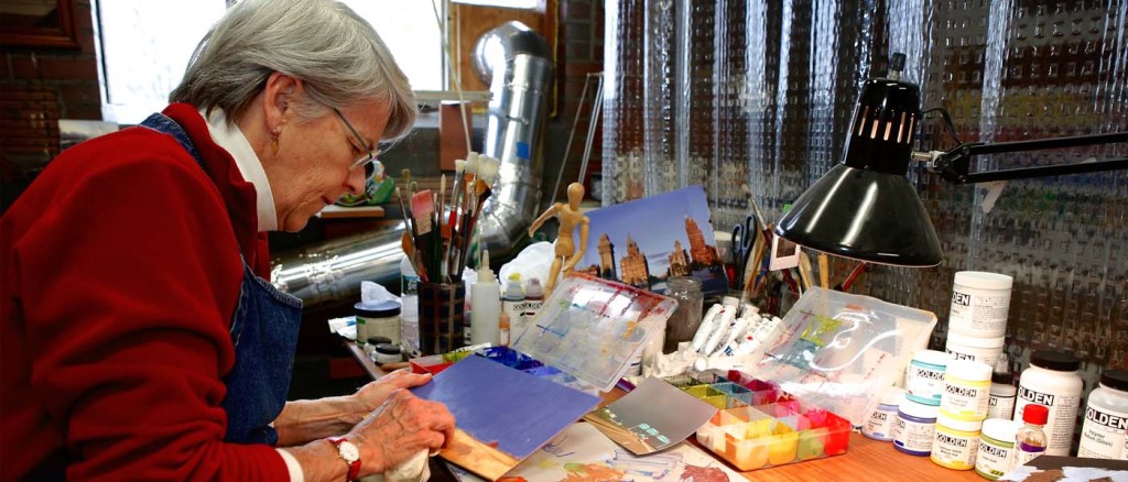 With a new project under way, Harris also devoted much energy to lining up exhibitions of her artworks. During 2013, she took part in 10 exhibits, including a group display at the Edgewood Gallery, a solo showcase at the Sparky Town restaurant, and a one-woman show at Bryan Memorial Gallery in Jeffersonville, Vt.