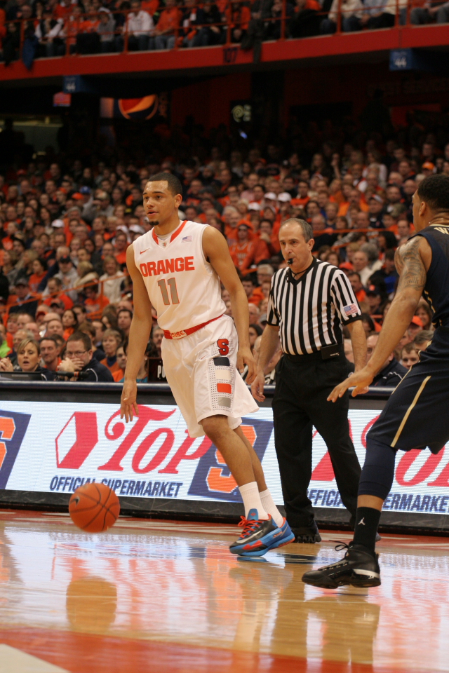 One of Ennis’ many un-freshman-like attributes is that he remains calm in any situation. Against Pitt, the 6-foot-2 Ennis had a sub-par first half (two points, one assist, one turnover) and watched a 10-point Orange lead turn into a 3-point deficit late in the second half. But down the stretch, when it was needed the most, Ennis rose to the occasion.