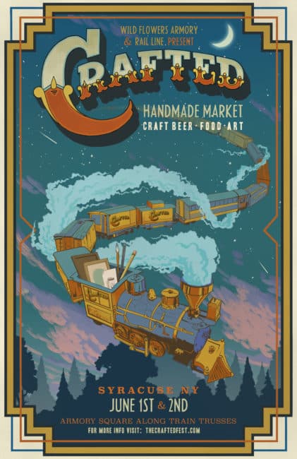 To keep the show accessible, there is no application fee. Once accepted, the vendor booth rental costs are $50 for a 10 feet by 10 feet single booth. Artists can also choose to split a single booth Poster art by Black Rabbit Studio for Crafted, slated for June 1 and 2 at Armory Square. with another vendor of their choice, making the cost $25 each.