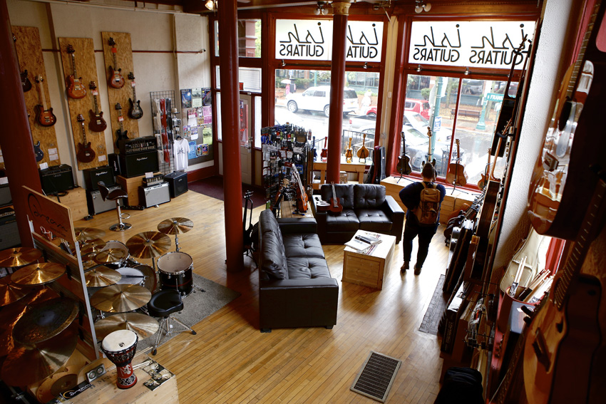 “We had 14 days to do everything,” he says. “In a way, it was good. We didn’t have as much inventory as we do now, which was better because it was packed in here. Within a month we had (the downtown location of) Funk n’ Waffles, SubCat Studios, the Redhouse, Sound Garden and Ish Guitars all down here in Armory Square. We have this little downtown music community.”