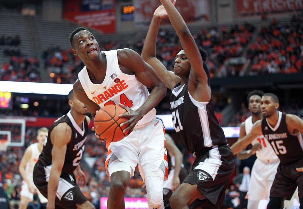 The Syracuse University men’s basketball squad was in a good position as it headed into the ACC, with decisive wins against Arkansas State on Dec. 22 (82-52 score) and a victory over St. Bonaventure on Dec. 29 (81-48) to close out the non-conference half of the season. In attendance during the Bonnies contest was a smiling Breanna Stewart, the basketball phenom for the Cicero-North Syracuse High School and University of Connecticut teams. She now plays for the Seattle Storm for the Women’s National Basketball Association.