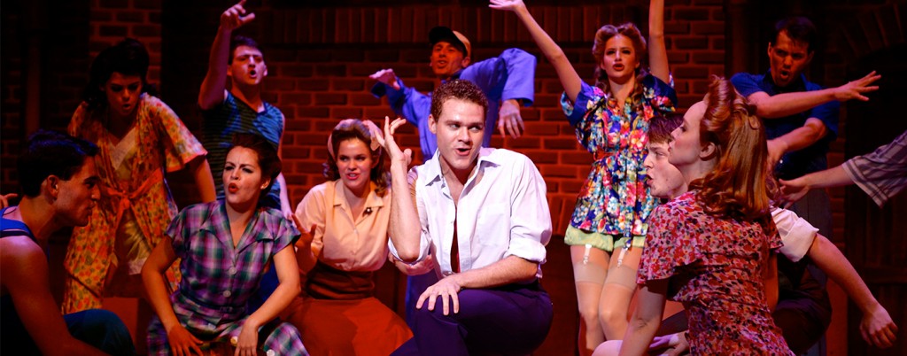 Despite the show’s 2 ½ -hour length, director David Lowenstein never allows the pace to flag, as he expertly seesaws between Kate’s modern-day mayhem and the Shrew scenes. Costume designer Meggan Camp likewise performs double duty, with her creations of Shrew’s eye-filling, Bard-era togs and the stylish late-1940s apparel worn backstage by the Kate players.