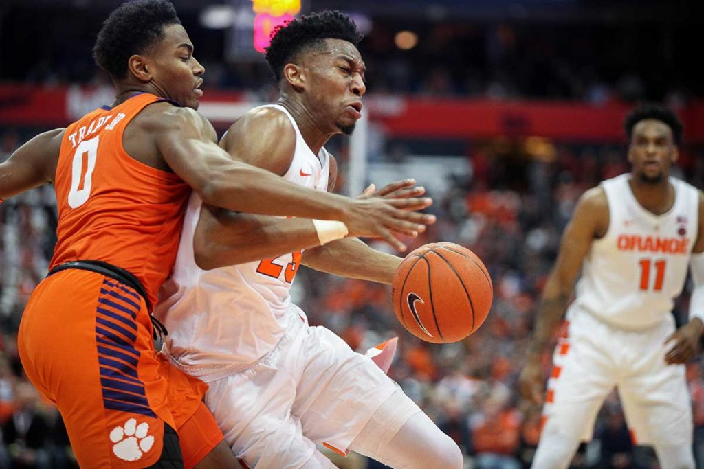 Share Facebook Twitter LinkedIn Pinterest Email In the second matchup of the ACC Jan. 9, the Syracuse University men’s basketball team took home a win at the Carrier Dome over the Clemson Tigers 61-53. The SU team was on a roll, having beat Notre Dam the week before on Jan. 5 72-62. photos SU men's basketball syracuse basketball