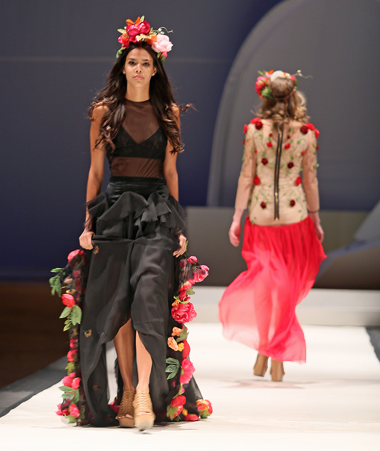 Syracuse University senior Amanda Martinez designed dresses shown at the SU Senior Collection Fashion Show at Goldstein Auditorium. The annual show presents the work of seniors in the College of Visual and Performing Arts fashion design program. Gloria Wright | Syracuse New Times