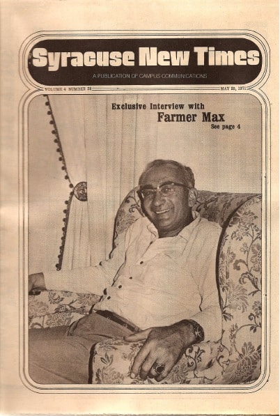 Looking back, the one Syracuse New Times story I penned that resonates most to this day was an exclusive 1971 interview with Bethel dairy farmer Max Yasgur, on whose farmland 600,000 baby boomers flocked to the 1969 Woodstock Festival for “three days of fun and music,” as Yasgur would proclaim to the throng. I grew up about 10 miles from the concert site and Yasgur was a customer of our family department store, so he knew my father.