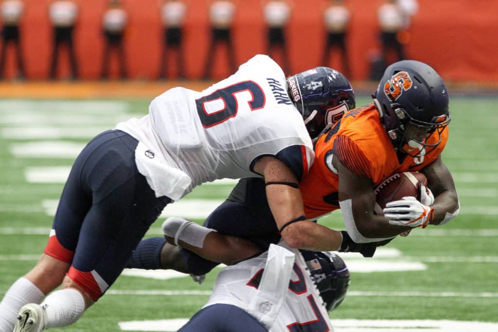 The big 4-0: The Syracuse University football squad blasted past Connecticut 51-21 during the Sept. 22 Carrier Dome matchup. With four wins and no losses thus far, it marks the first time the Orange has been in this unique position since 1991. Halftime festivities included an emotional tribute to former Orange great Joe Morris and his No. 47 jersey.