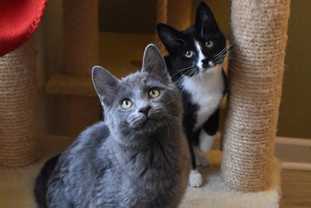 Boots’ and Smokey’s mother was a young cat when she got pregnant. She was a house cat who was never fixed and escaped, but it took just the one time to get pregnant. The owner ended up surrendering the mother and her two kittens to the Coalition.