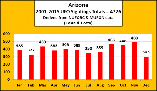 People have been asking if my wife and co-author, Linda Miller Costa, and I had made any discoveries when we were researching our book, UFO Sightings Desk Reference: United States of America 2001-2015. We actually made a number of previously unknown discoveries about the observation of UFOs, including a significant one called the “month pattern.”