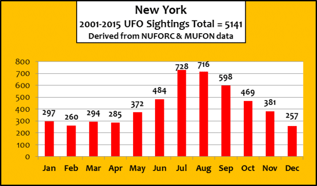 Since I started writing the New York Skies blog, I have found that New York experiences a high season for UFO sightings, June through September, peaking in July and August. My assumption, and the conjecture from many readers, suggested that this was a fair weather pattern. Nicer weather gave a better opportunity for more observers to be outside for a chance to see a UFO. We also took for granted that the every place would have a pattern like this.