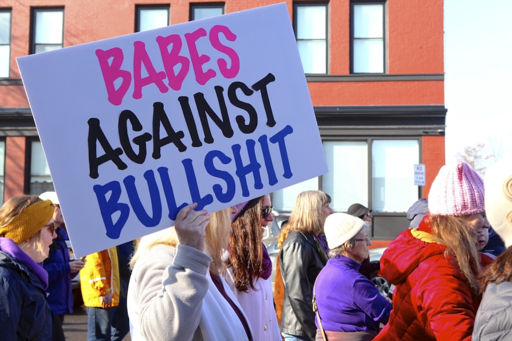 Many more were punny and clever. A sampling: “Make Racists Afraid Again,” “Girls Just Gotta Have Fundamental Rights,” “Words Matter” and “Not My Tweeter.” Other notable signs: “Keep Your Tiny Hands Off Our Rights,” “Keep Your Paws Off My Silky Drawers” and “If You Cut Off My Reproductive Freedom Can I Cut Off Yours?”