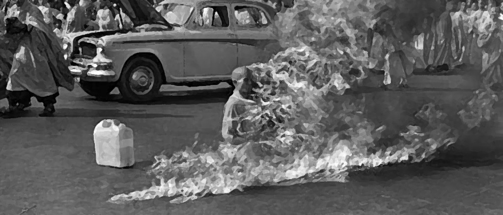 “Protest by self-immolation has become associated with death by fire, but the etymological root of immolation is ‘sacrifice.’” He argues that as much as it is an old phenomenon, it has made a modern comeback since Quang Duc. The ability of images of the act to be transmitted by the mass media, as well as the diminishing visibility of execution by the state are two reasons for this resurgence. Quang Duc set himself on fire in full knowledge, and hope, that people would see his death.