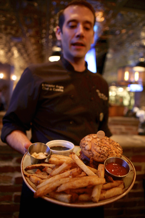 Ross also oversees a colorful ensemble of foodie specialists. John Stotts, the cowboy-hatted pitmaster at the country-themed Tin Rooster, said that he grew up in the Southwest and thought about moving back there to open a barbecue “until this opportunity came up.” Stotts fielded a Tailgate Platter, a finger-lickin’ batch of smoked chicken, beef short ribs, pulled pork, kielbasa and more.
