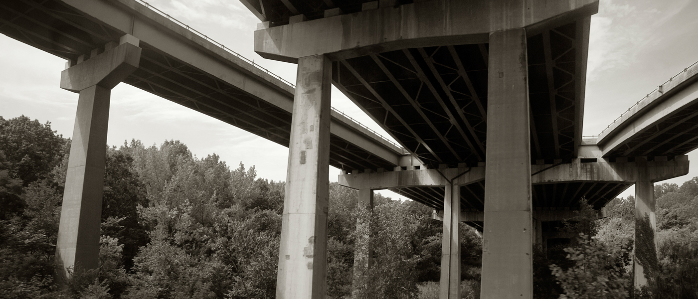 Photographer Marna Bell has more than 20 images on display, with photos selected from several bodies of work. One group was taken during Amtrak trips to Bell’s childhood home, Brooklyn. Because she shoots while the train is moving, the images come in various forms. A few are relatively straightforward, like the photo of a Harlem neighborhood seen as the train pulls into New York City. Another photo catches the countryside in passing, showing several trees in a blur.