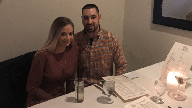 Dominick, Pat and Ashley’s 15-month-old son, spent the night with his grandparents, giving the adults a much-needed night for two. The couple began their date with drinks before heading to their complimentary dinner at The Chop House on Waring (200 Waring Road; (315) 445-1976). The pair treated themselves to a crispy shrimp appetizer before moving on to Cowboy Ribeye and Smoked Prime Rib steaks.
