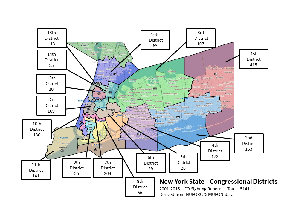 As you can see from the data presented, there are many New York congressional districts that have large amounts of eye witness UFO reports.