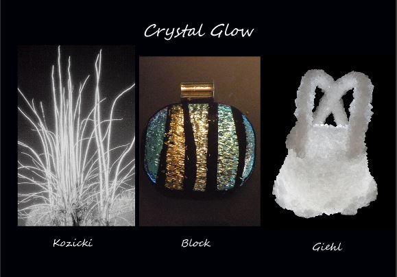 The Edgewood Gallery’s new show Crystal Glow fits in nicely with the venue’s general approach to group exhibitions. On one hand, it displays pieces by three artists, all of whom work in different media and have distinct styles. On the other, the exhibit has a unifying element, one that arises from the works themselves instead of some artificial linkage.