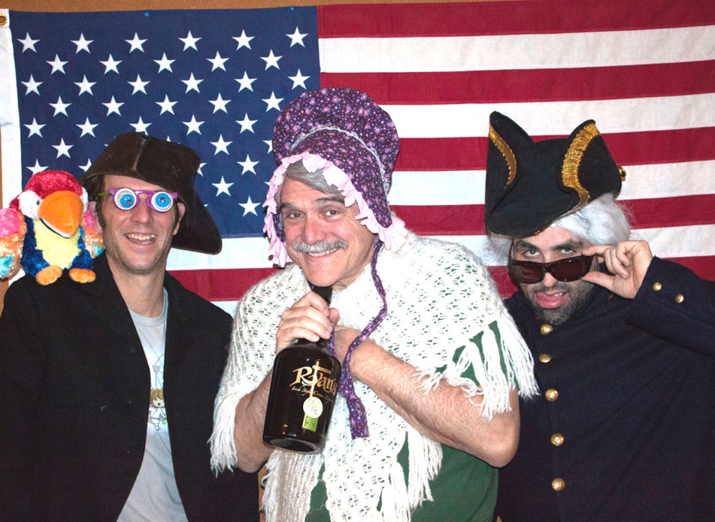 Playwrights Adam Long, Reed Martin and Austin Tichenor sound like wounded patriots. While they dote on the absurdities of American history, like how the whole place was named by a careless Italian mapmaker, they are unsparing on the seamier chapters in American history. Chief among these are, of course, slavery and the wresting of the land from the native population. The three players, breaking though the fourth wall, tell us that some subjects, like child labor, just don’t lend themselves to comedy. Repeatedly, however, this show offers exuberant, flag-waving fun.