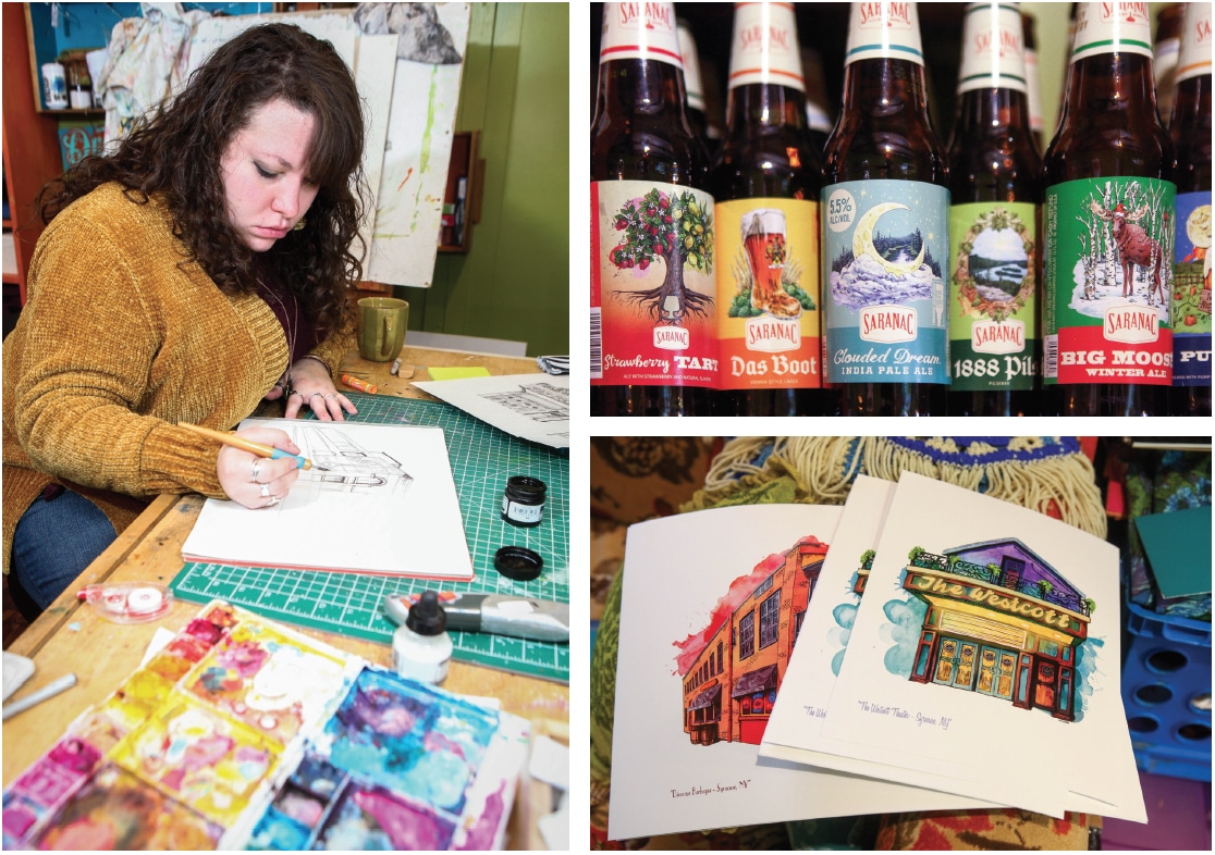 Vallese’s artwork now graces one of Utica’s biggest claims to fame: Saranac beer. Vallese does all of their illustrated packaging, from the Adirondack-themed images on their core line to the more exclusive trippy hops and beer-king playing cards that adorn some of the Inner Circle Series brews.