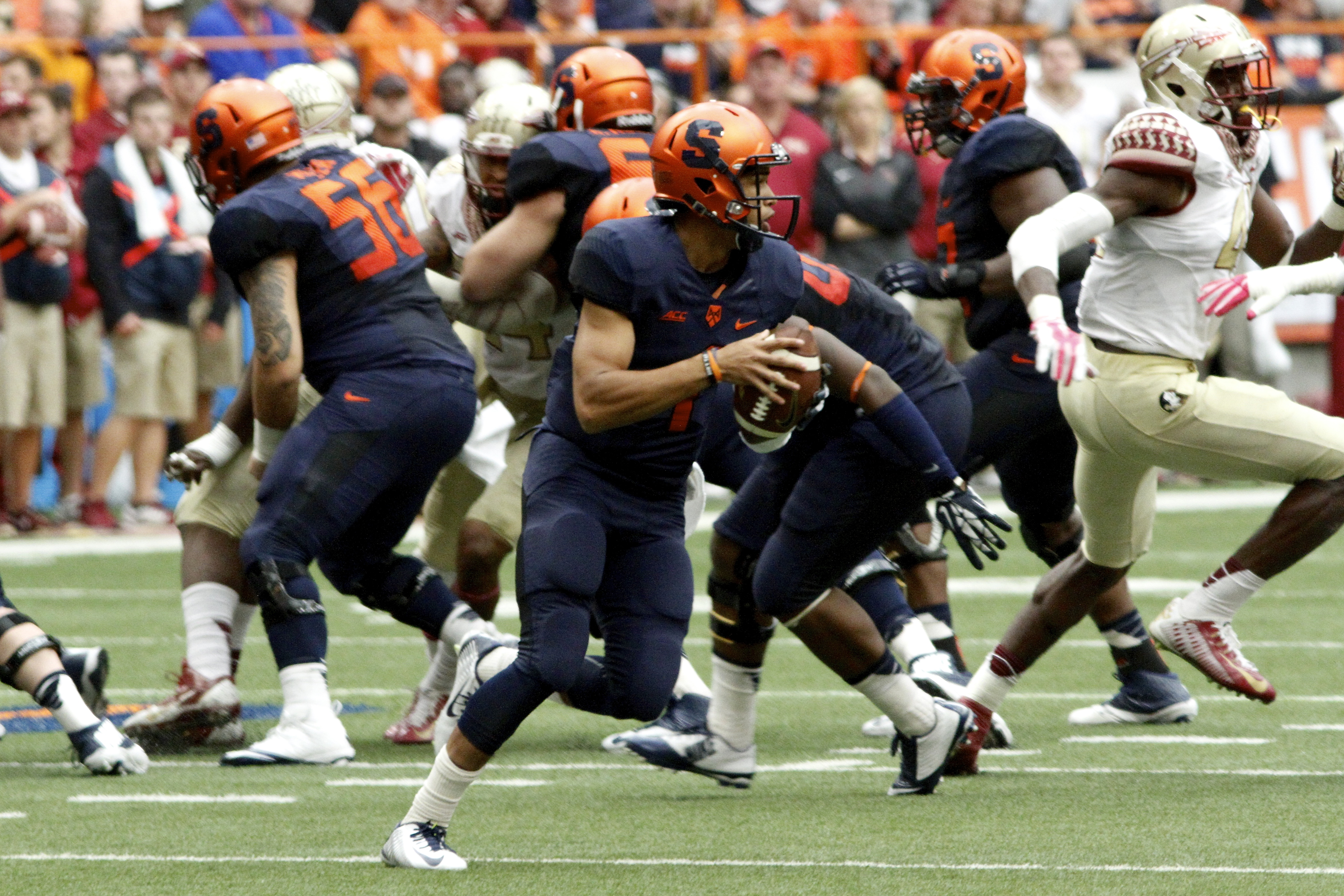 As promised by head coach Scott Shafer, the Syracuse University football players fought their “butts” off against No. 1 Florida State Saturday, Oct. 11, and held their own in a 38-20 loss at the Carrier Dome.